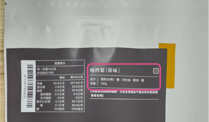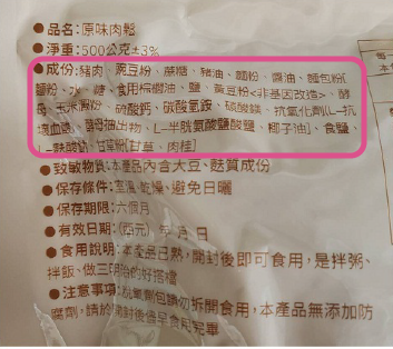 知道了肉鬆的大概製程之後,判定肉鬆最直接的方式就是看成分標示!