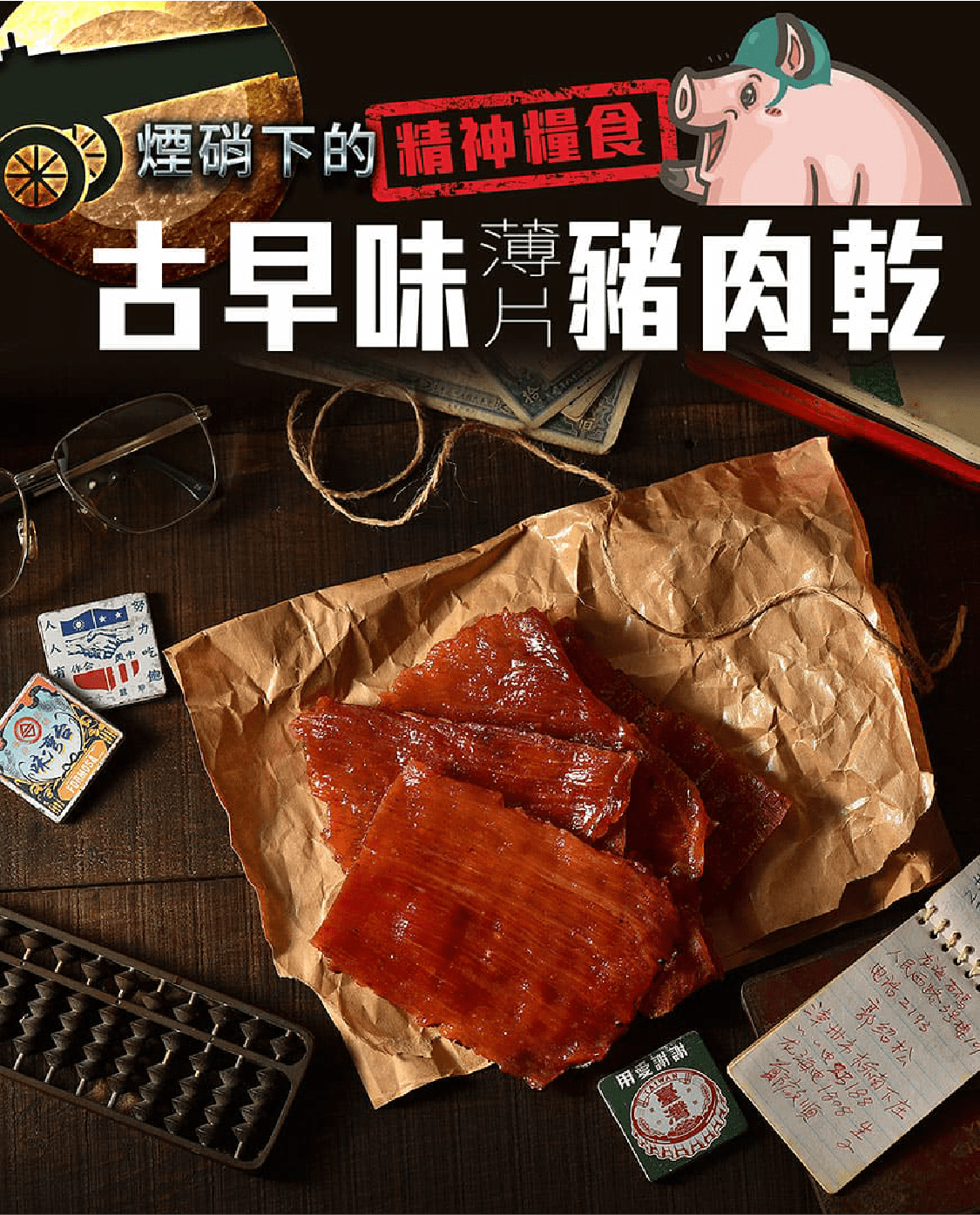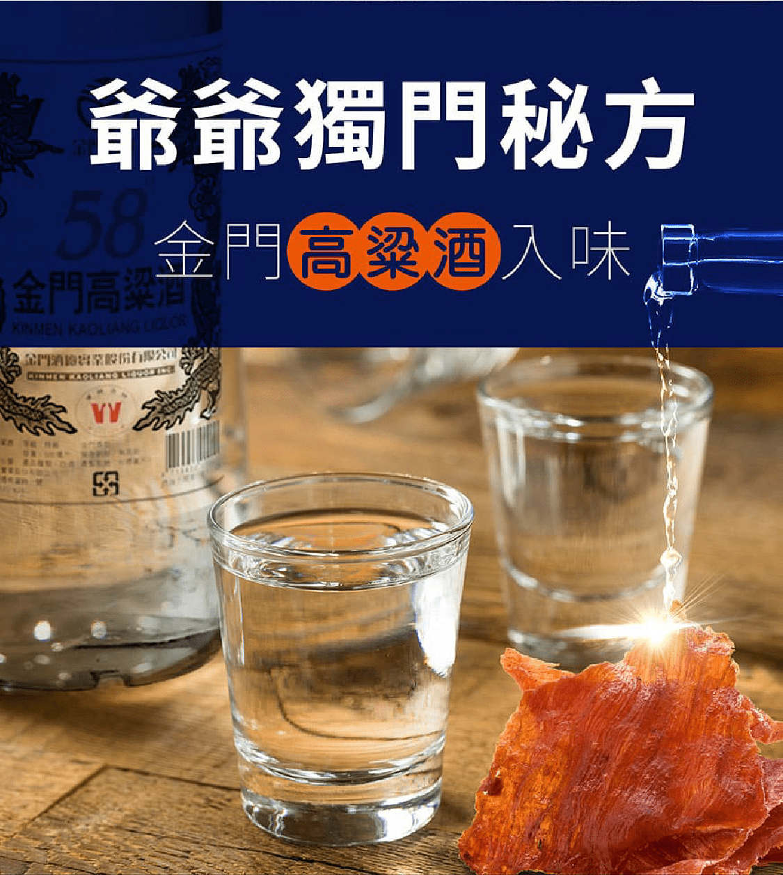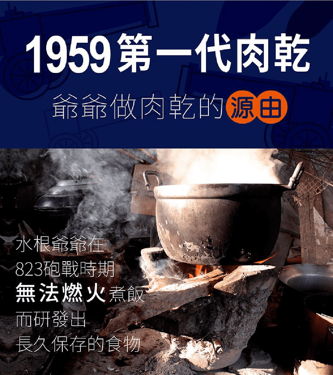 始於823砲戰戰火下的產物,用最原始的方式把肉品保存下來。至今傳承已餘六十年的古法製成,保留豬肉纖維,