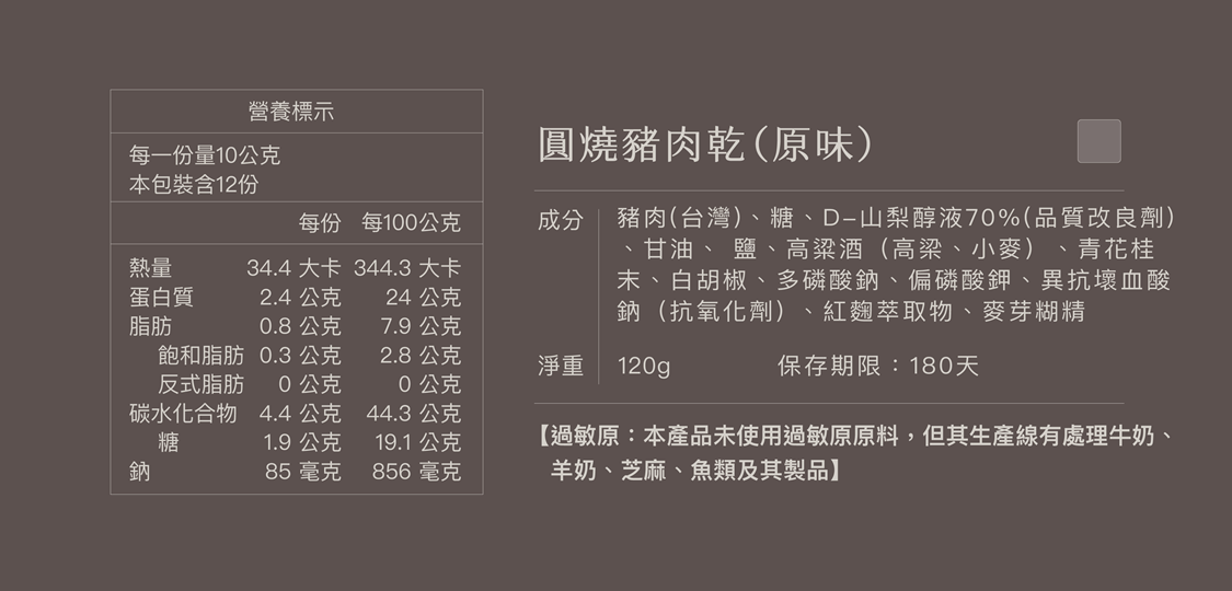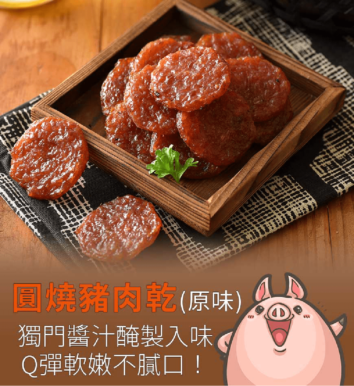 最單純自然的原味,加入獨特香料醃製,襯托出豬肉的甘甜,保留豬肉纖維,吃出肉乾軟嫩 juicy 的口感。