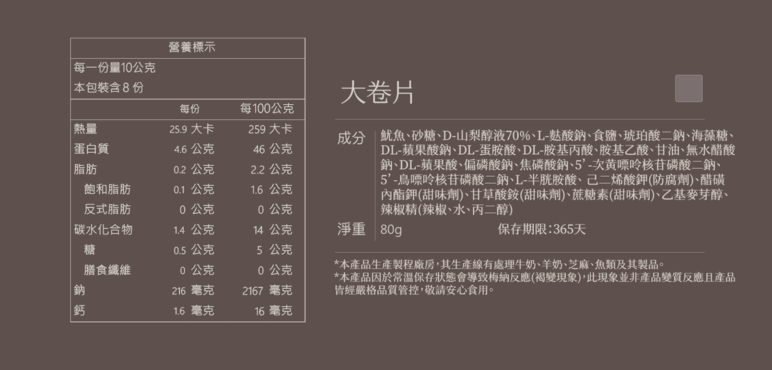 【水根肉乾】大卷片(分享包)/80g