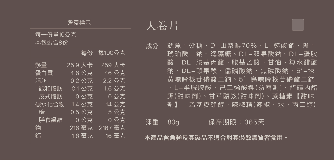 如果你是一個喜歡微辣的人,絕對不能錯過大卷片,烘烤後的大卷片軟嫩又不失彈牙口感,咀嚼中還有淡淡的甜味,越咬越香,不吃都對不起大卷片了!