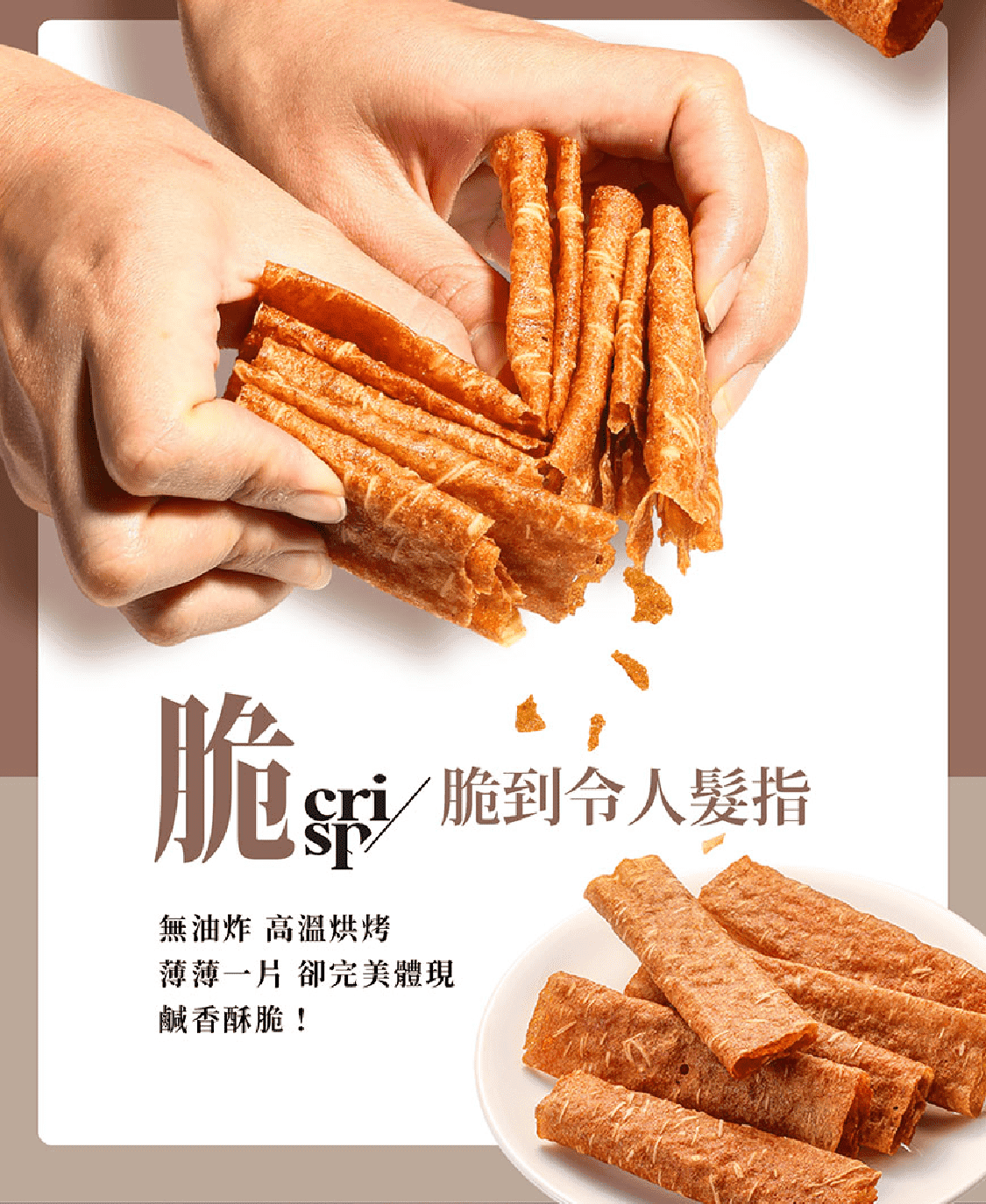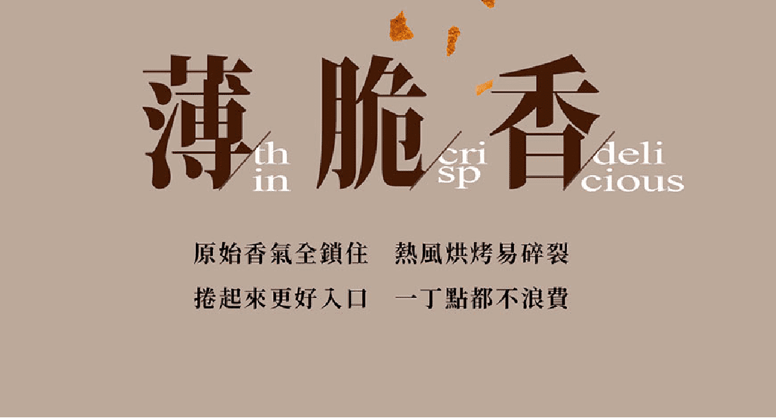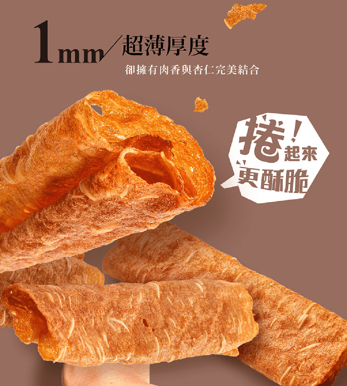 1mm超薄厚度,卻擁有肉香與杏仁完美結合,鹹香酥脆,捲起來更好入口,一丁點都不浪費!