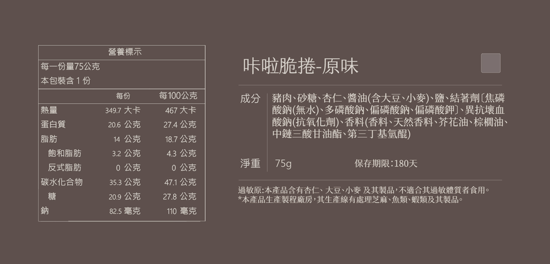 1mm超薄厚度,卻擁有肉香與杏仁完美結合,鹹香酥脆,捲起來更好入口,一丁點都不浪費!