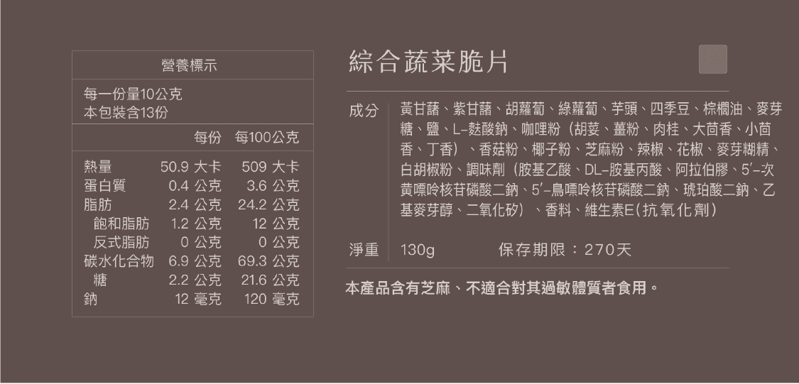 【水根肉乾】綜合蔬果(分享包)/130g